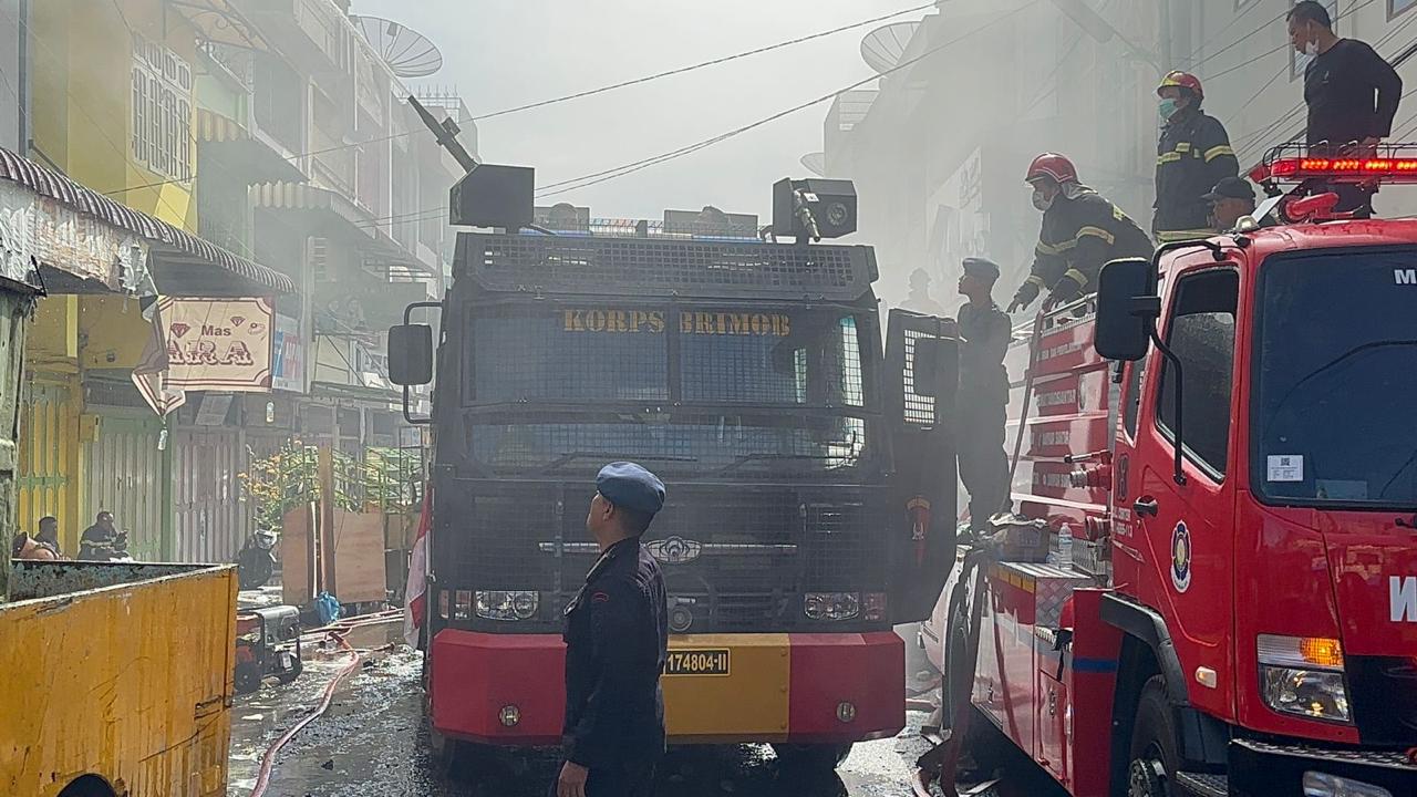 Kebakaran yang diketahui berasal dari lantai dua ruko sandal dan sepatu Sehati Jaya tersebut sempat menimbulkan kepanikan warga sekitar.