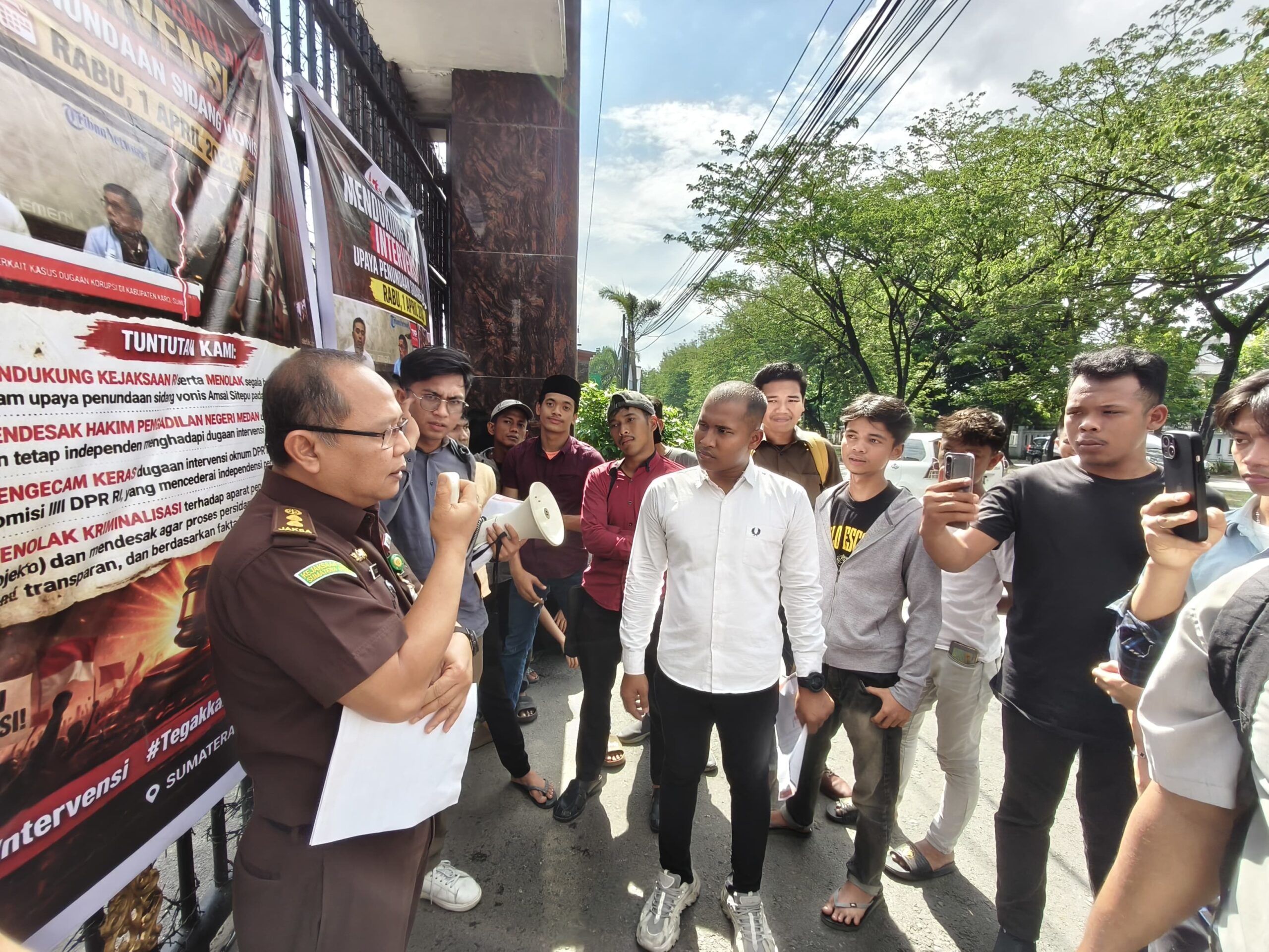 Ditambahkan Rizaldi, Kejaksaan senantiasa bekerja dan berupaya maksimal sesuai aturan atau SOP dalam penegakan hukum, ini dilakukan demi kepentingan bangsa dan negara dalam hal ini adalah daerah Sumatera Utara, terkait tuntutan massa pengunjuk rasa perihal proses persidangan perkara tipikor atas nama terdakwa Amsal Sitepu seluruhnya kita serahkan kepada Majelis Hakim.