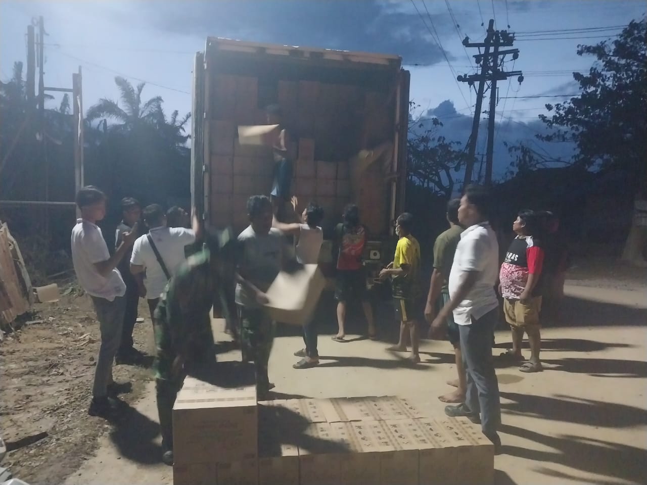 ACEH TAMIANG, Radar BI- Anggota Koramil 08/Rantau jajaran Kodim 0117/Aceh Tamiang yang bertugas mengawal pendistribusian bantuan dari Mitsubishi Dipo Group Indonesia bagi warga terdampak musibah banjir di Kabupaten Aceh Tamiang. Pendampingan penyaluran bagi korban banjir itu, dilakukan oleh Anggota Koramil 08/Ranatu, Senin (08/12/2025)