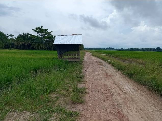 Bangunan berukuran sekitar lebih kurang 3×4 meter itu muncul dalam beberapa hari terakhir. Materialnya sederhana, berupa kayu,papan dan seng berdiri di badan jalan desa di sekitar persawahan masyarakat.