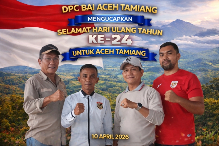 ACEH TAMIANG, Radar BI – Dewan Pimpinan Cabang (DPC) Badan Advokasi Indonesia (BAI) Kabupaten Aceh Tamiang menyampaikan ucapan selamat dan apresiasi yang setinggi-tingginya kepada seluruh masyarakat dan Pemerintah Kabupaten Aceh Tamiang dalam rangka memperingati Hari Ulang Tahun (HUT) Kabupaten Aceh Tamiang yang ke-24.
