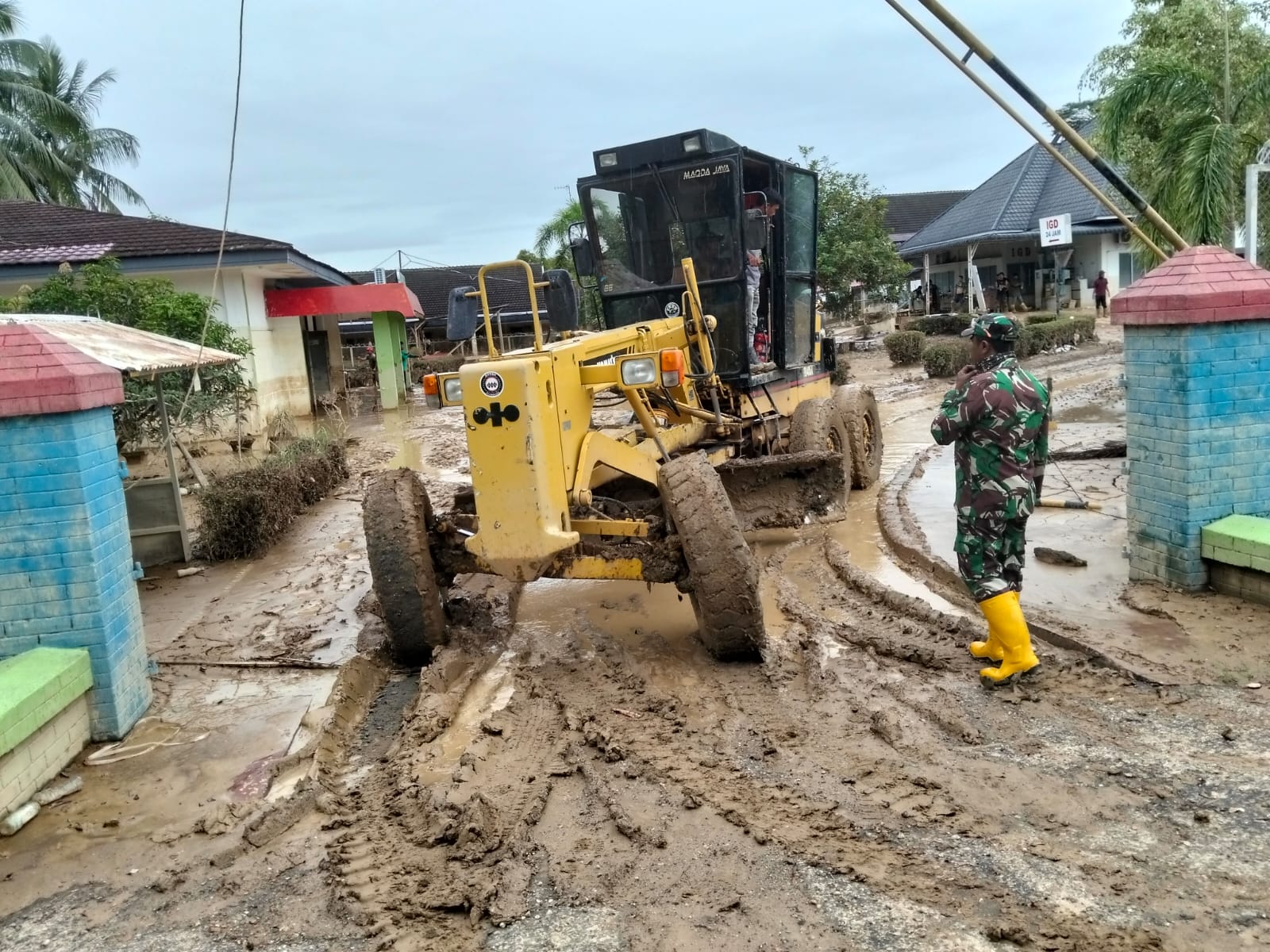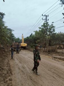 Di beberapa desa, ekskavator dan loader dikerahkan untuk menyingkirkan material lumpur yang mengeras, sementara tim lapangan memastikan proses pembersihan berjalan aman. Seperti yang terlihat di lapangan Babinsa Koramil 08/Ranatu Serma Syafrizal terus kawal alat berat yang sedang berkerja di jalan Kecamatan Rantau, Kabupaten Aceh Tamiang untuk membuka jalur agar aktivitas kembali pulih dan bantuan logistik dapat disalurkan lebih cepat. Selasa (16/12/2025)
