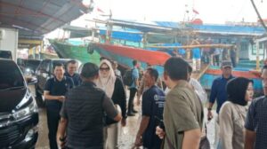 Bupati Tanjabtim Hj.Dilla bersama wakilnya, Muslimin Tanja,S.TH.I,.M.SI, melihat langsung aktifitas dan tata kelola kelompok nelayan binaan Koperasi Perikanan Laut Mina Sumitra