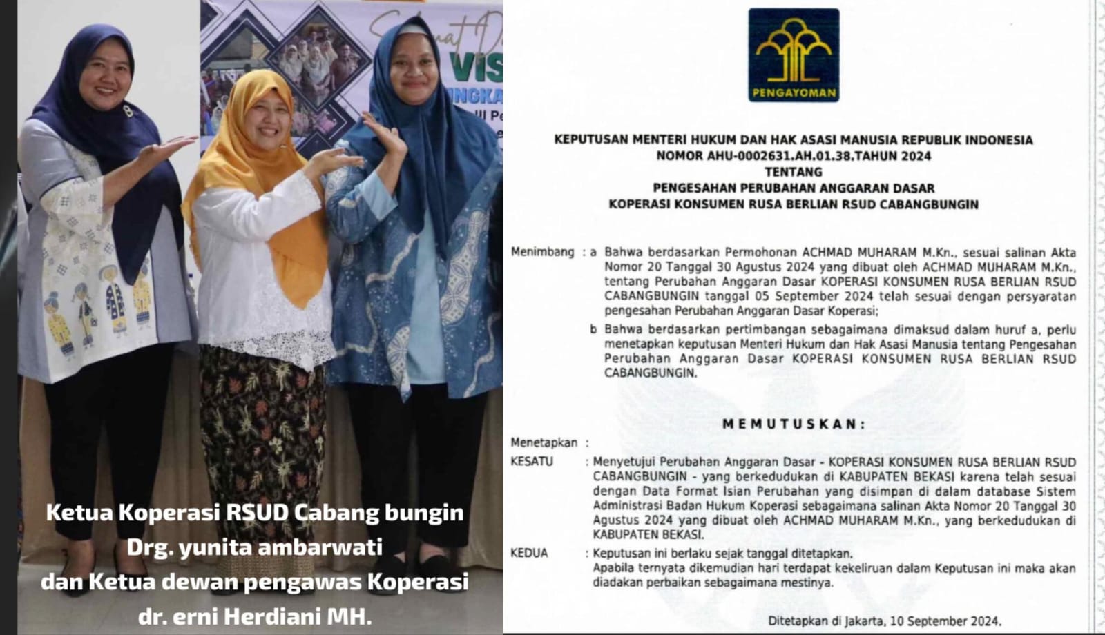Diduga Konflik Kepentingan,Direktur RSUD Cabangbungin Bekasi Rangkap Jabatan Sebagai Dewan Pengawas Koperasi Internal