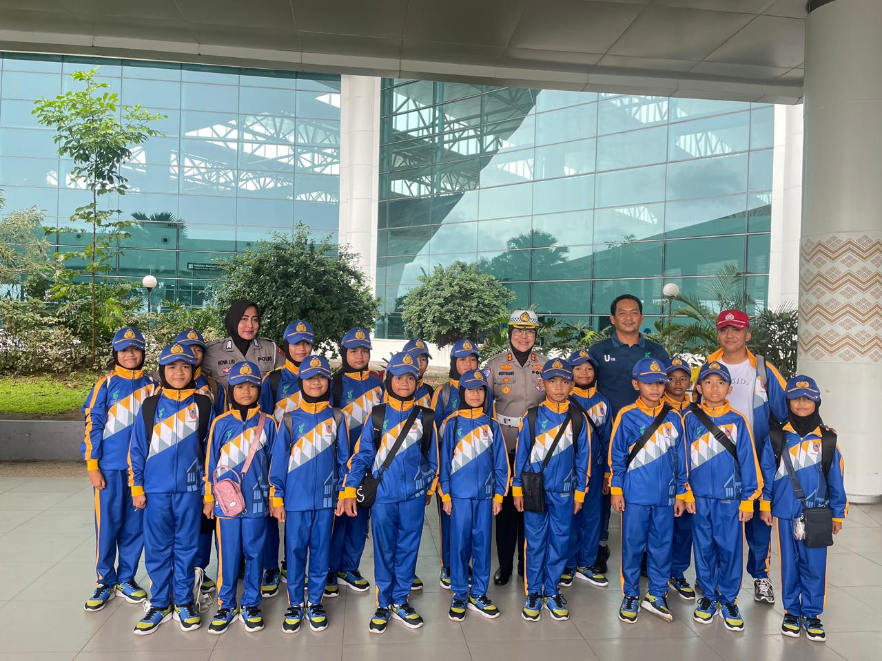 BANJARBARU, Radar BI – Raut wajah bangga dan penuh semangat terpancar dari kontingen Polisi Cilik (Pocil) Banua Polres Hulu Sungai Utara (HSU). Bertempat di Bandar Udara Internasional Syamsudin Noor, kontingen ini secara resmi dilepas untuk bertanding dalam ajang bergengsi *Final Tour Olahraga Baris Berbaris U-12 Tingkat Nasional Tahun 2025* yang akan digelar di GOR Sumantri, Jakarta Selatan.