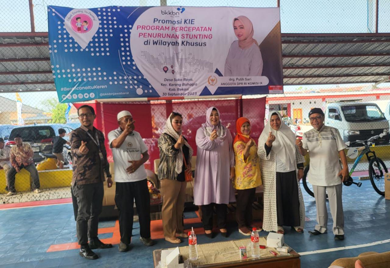 Anggota Komisi IX DPR RI Drg. Putih Sari Bersama Hj Riska Aprilia. SE menggandeng Badan Kependudukan dan Keluarga Nasional (BKKBN) Provinsi Jawa Barat mensosialisasikan program percepatan penurunan stunting kepada masyarakat di Desa Sukaraya, Kecamatan Karangbahagia Kabupaten Bekasi, Sabtu 30 September 2023.