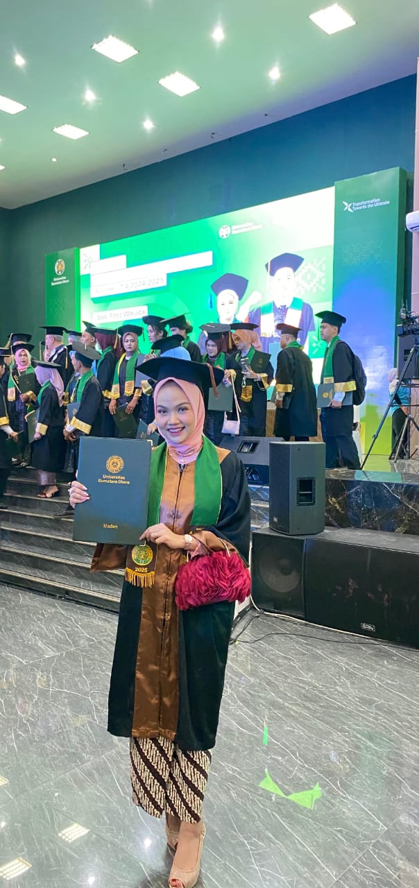 Ia juga mengapresiasi Rektor USU, Prof. Dr. Muryanto Amin, S.Sos., M.Si., serta dosen pembimbing yang telah memberikan bimbingan berharga selama masa studinya.