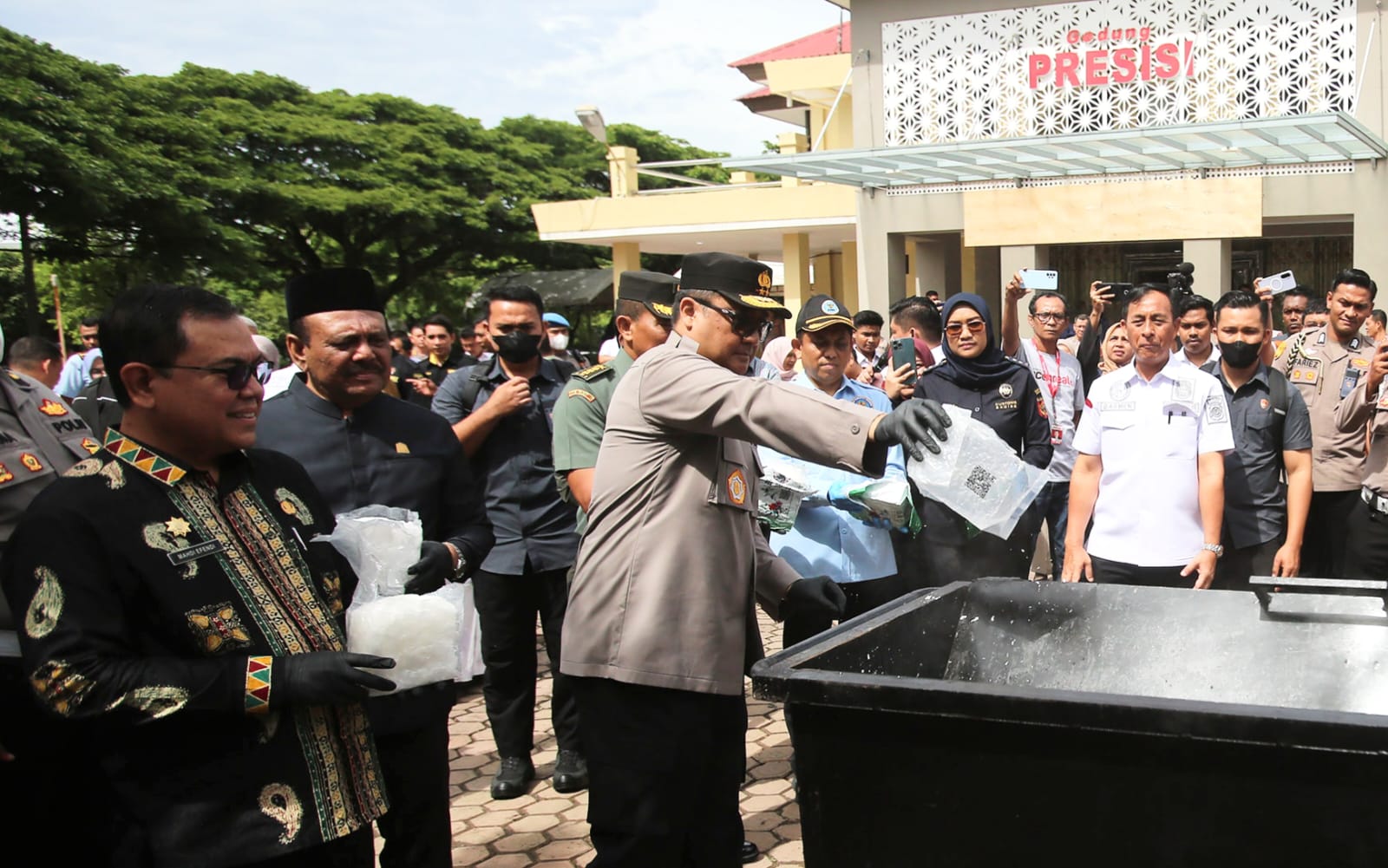 “Upaya pengungkapan dan pemusnahan barang bukti yang kita saksikan hari ini adalah bukti nyata kerja keras, dedikasi, dan komitmen aparat penegak hukum di Aceh,” tegasnya.