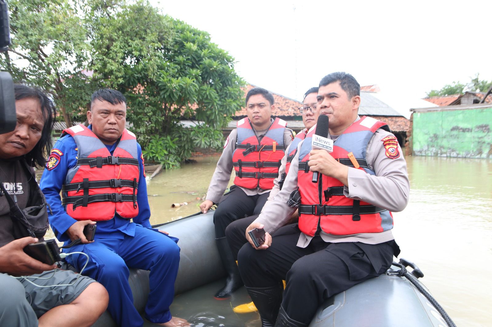 “Bahwa kita ada di lokasi TKP di Desa Linggar Jati, Karangligar. Saat ini kondisi banjir mencapai kurang lebih dua meter setengah untuk yang tertinggi, dan terendah sekitar 70 sentimeter,” ujar Kombes Pol. Hendra Rochmawan.