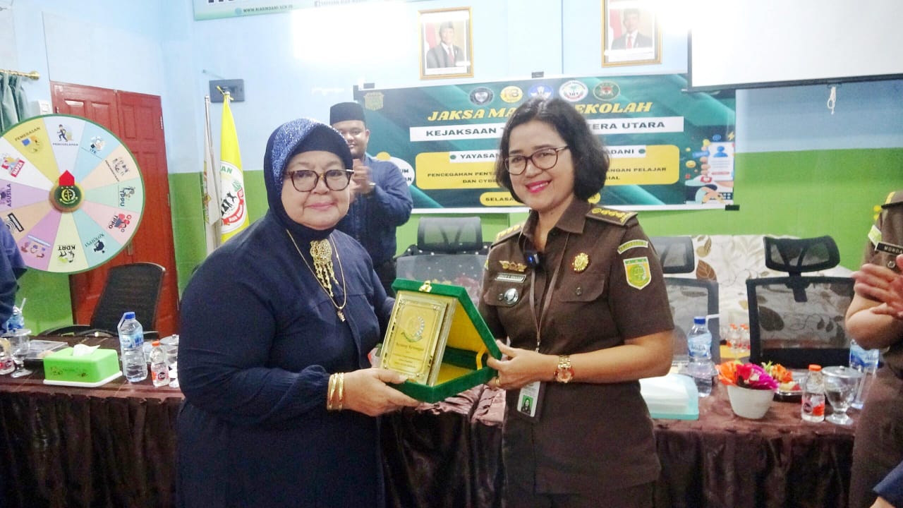 Sejalan dengan itu, Ketua Yayasan Pendidikan Riad Madani Dra Hj Sukmawaty Nasution bersama guru dan tenaga pengajar menyampaikan apresiasi yang sebesar besarnya kepada Kejaksaan Tinggi Sumatera Utara atas kepedulian terhadap kondisi dan perkembangan dunia Pendidikan saat ini khususnya pada Yayasan Pendidikan Riad Madani.