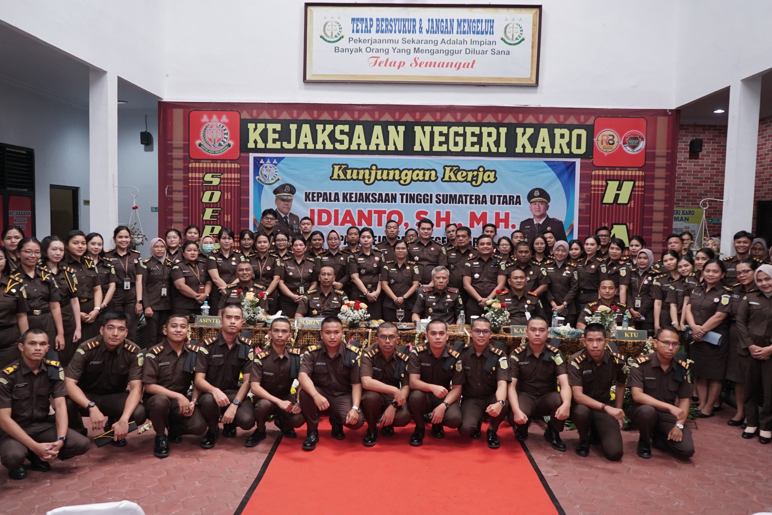 KARO,SUMATERA UTARA, Radar BI- Kunjungan kerja Kepala Kejaksaan Tinggi Sumatera Utara Idianto, SH,MH ke Kejaksaan Negeri Karo disambut oleh Kajari Karo Darwis Burhansyah, SH,MH, Bupati Karo Brigjen Pol (Purn) Dr. dr. Antonius Ginting, Sp.OG, M.Kes, Wakil Bupati Karo Komando Tarigan, Ketua DPRD Karo Iriani Tarigan, Wakapolres Tanah Karo Kompol Zulham, SH, MH, Dandim serta unsur Forkopimda lainnya.