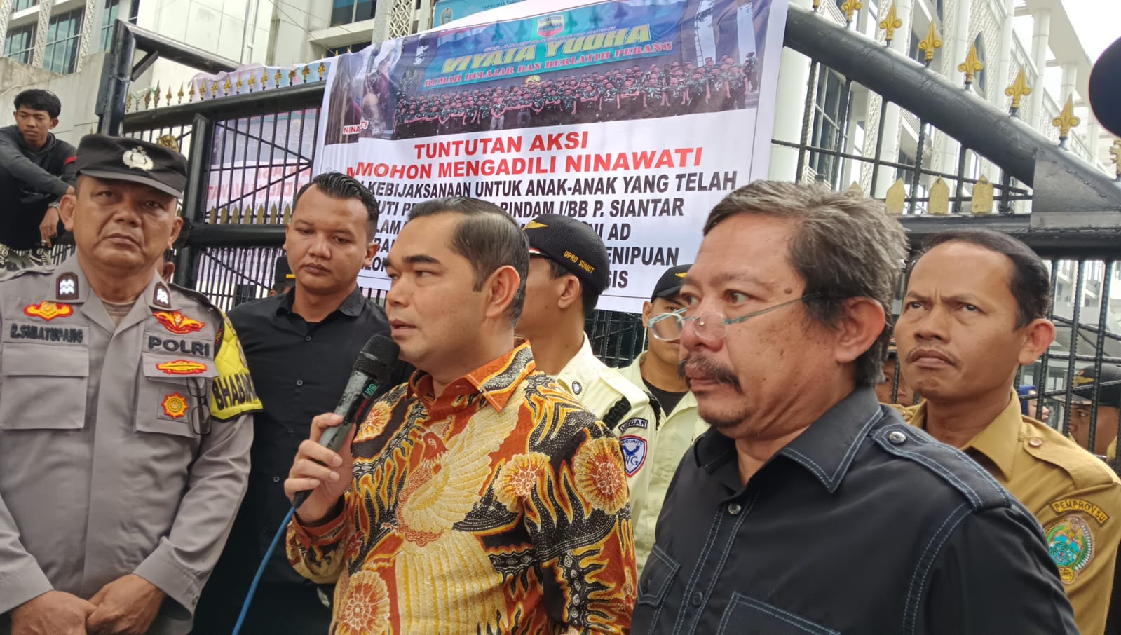 Terlihat pada saat melakukan aksi para pengunjuk rasa sempat mengoyang-goyang pintu gerbang Kantor DPRD Provinsi Sumut meminta Ketua DPRD Provinsi Sumut agar keluar menemui masa untuk mendengarkan aspirasi orang tua korban penipuan masuk anggota TNI AD tersebut.