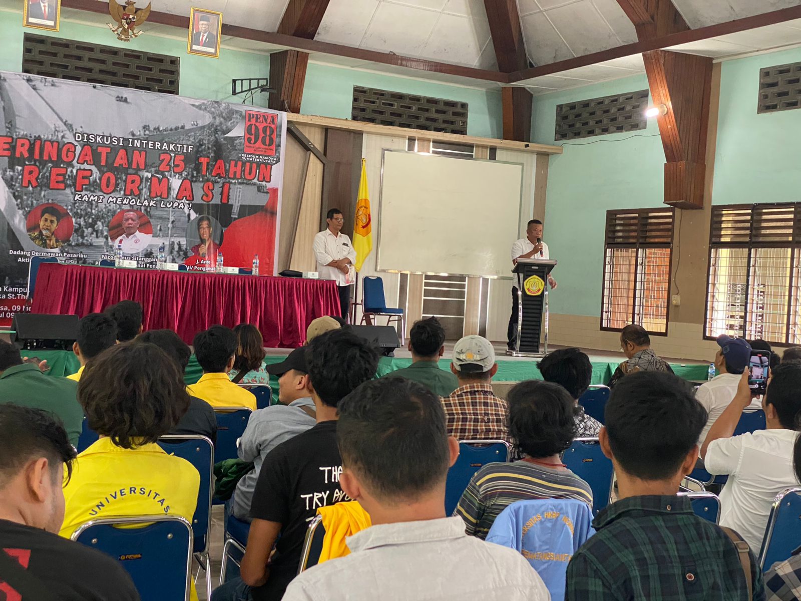 Persatuan Nasional Aktifis 98 (PENA’98) Sumut menggelar acara Diskusi Interaktif untuk memperingati dua puluh (25) Tahun Reformasi. Diskusi mengangkat tema, “Kami Menolak Lupa”. Acara tersebut dilaksanakan pada hari ini, Selasa tanggal 9 Mei 2023 bertempat di Aula Unika St. Thomas Medan.