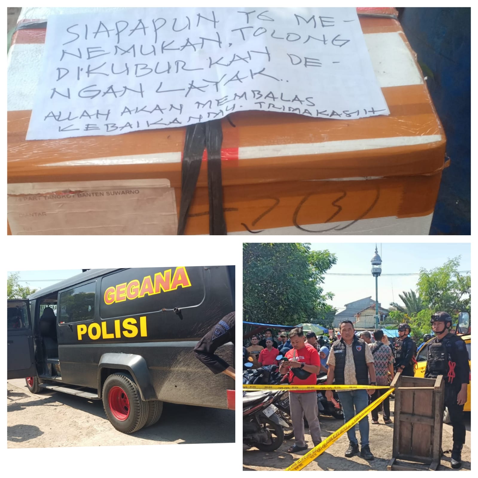 Saat tiba di area pangkalan ojek, saksi melihat sebuah kotak styrofoam tergeletak di samping pos ojek. Di atas kotak tersebut terdapat secarik kertas bertuliskan pesan yang mengundang perhatian: “Siapapun yang menemukan tolong dikuburkan dengan layak, Allah akan membalas kebaikanmu, terima kasih.”