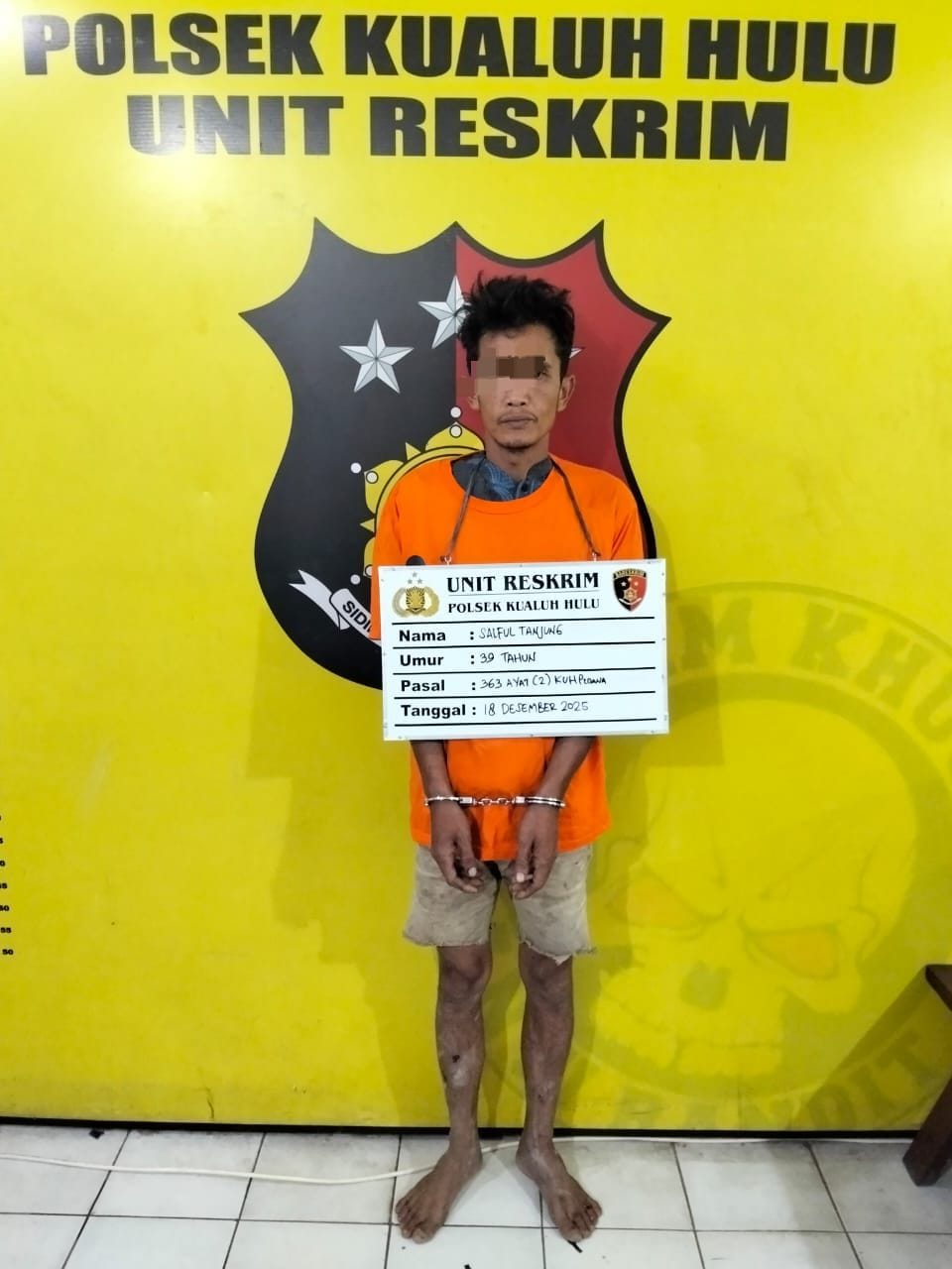 Penangkapan dilakukan setelah tim Reskrim melakukan penyelidikan dan pengembangan informasi. Tersangka mengakui perbuatannya dan kini ditahan di Polsek Kualuh Hulu untuk proses hukum lebih lanjut sesuai Pasal 363 ayat (2) KUHPidana. Polisi masih memburu pelaku lainnya yang terlibat dalam kasus tersebut.(M, Nur Sipahutar)