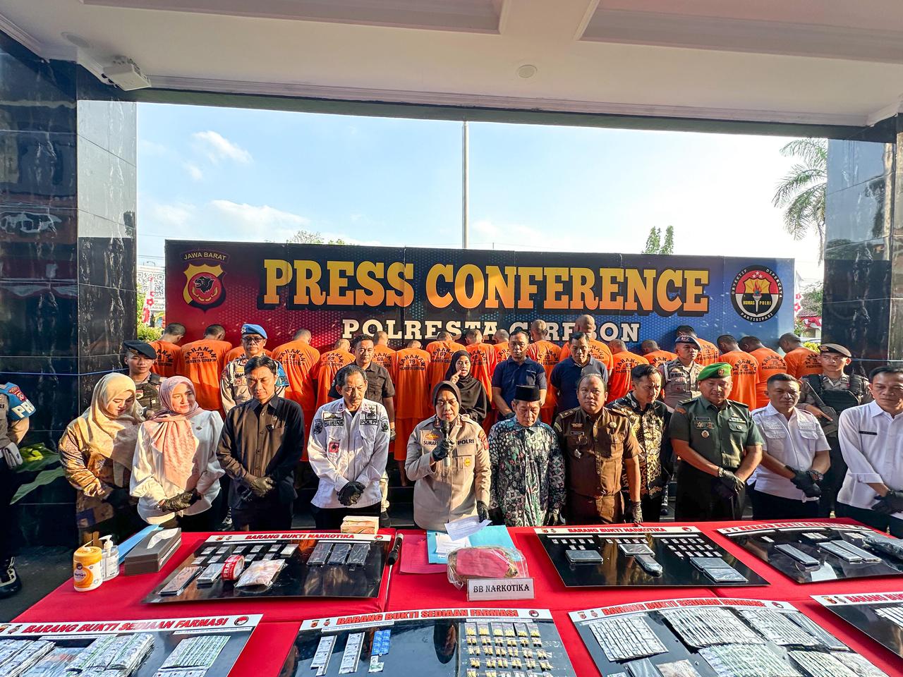 Kegiatan konferensi pers ini juga dihadiri oleh sejumlah pejabat dan tokoh daerah, antara lain Kasat Pol PP Kabupaten Cirebon, Kadishub, Kajari yang diwakili Kasi Pemulihan Aset dan Barbuk, Kasdim 0620, Ketua MUI, Kepala Dinas Kesehatan, Wakil Ketua DPRD, serta perwakilan Pengadilan Negeri Kabupaten Cirebon. Kehadiran lintas sektor ini menunjukkan sinergi yang kuat dalam mendukung upaya Polresta Cirebon memberantas narkoba hingga ke akar-akarnya.(Heru/Ita)