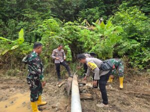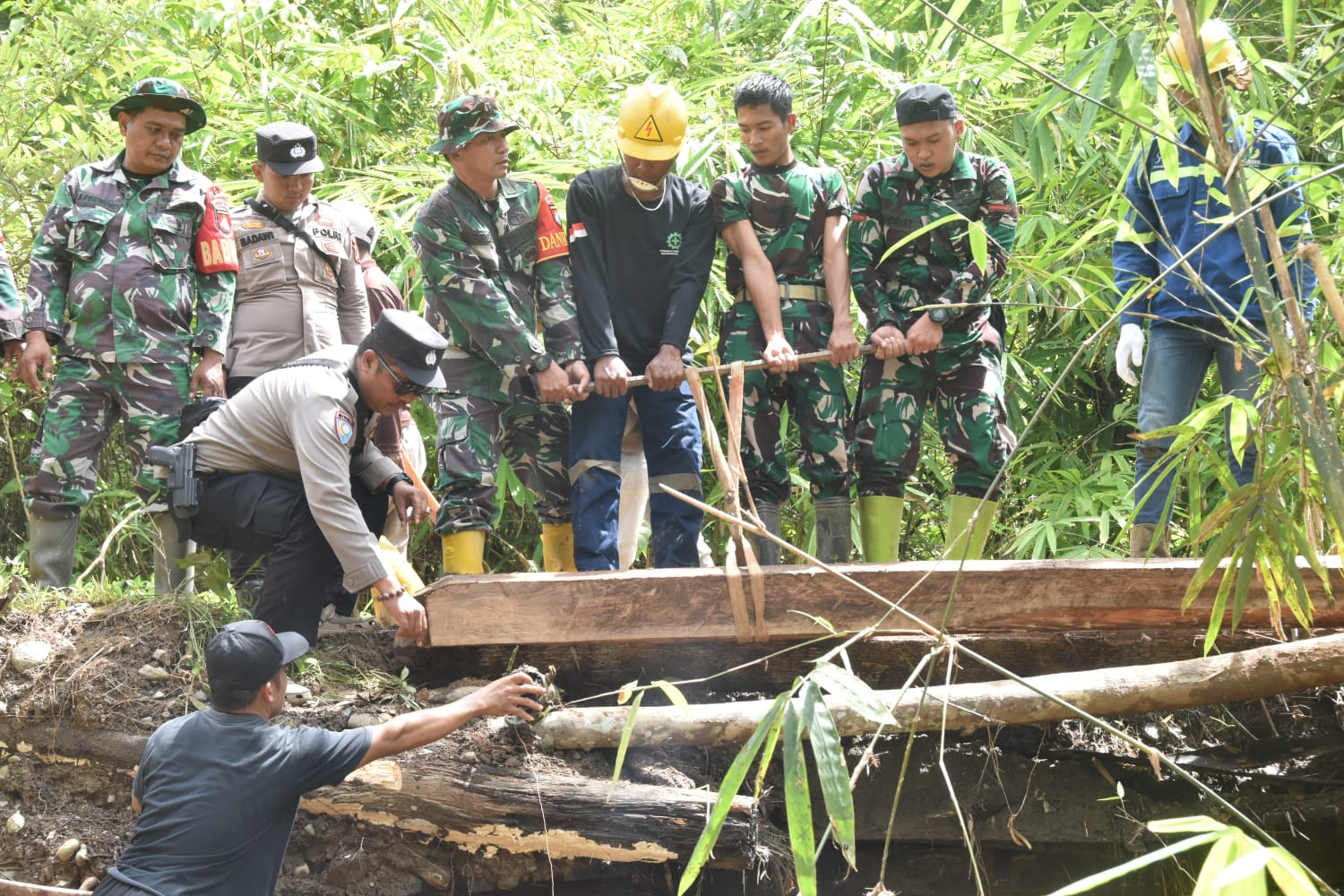 Polres HST bersama TNI dan Pemerintah Daerah, Laksanakan Gotong Royong Perbaiki Jembatan Rusak di Kecamatan Batang Alai