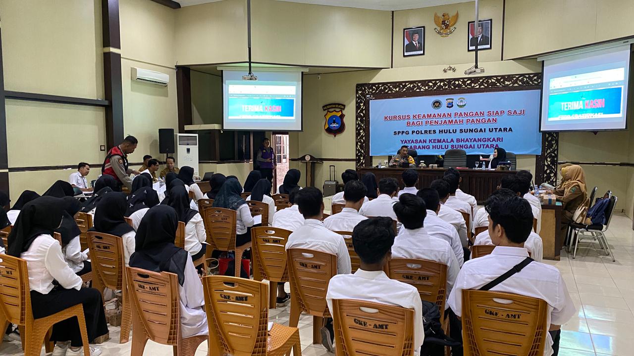 HULU SUNGAI UTARA, Radar BI –Polres Hulu Sungai Utara (HSU) melalui Yayasan Kemala Bhayangkari Cabang HSU menyelenggarakan Kursus Keamanan Pangan Siap Saji bagi Penjamah Pangan SPPG Polres HSU, bertempat di Aula Jana Nuraga Polres HSU, Jalan Muhajirin, Kelurahan Murung Sari, Kecamatan Amuntai Tengah, Kabupaten Hulu Sungai Utara, pada Senin (26/1/2026).