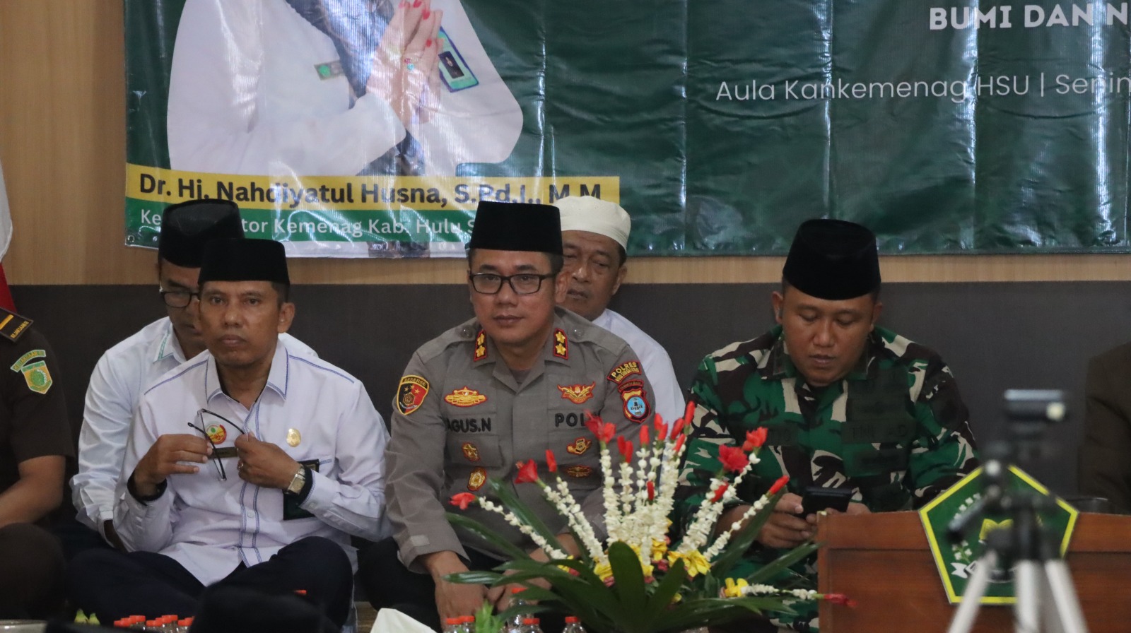 Kapolres HSU AKBP Agus Nuryanto, S.I.K., M.Si, melalui PS. Kasi Humas Polres HSU IPTU Asep Hudzainur, menyampaikan bahwa kehadiran Polres HSU dalam kegiatan ini merupakan wujud komitmen kepolisian dalam mendukung kegiatan keagamaan.