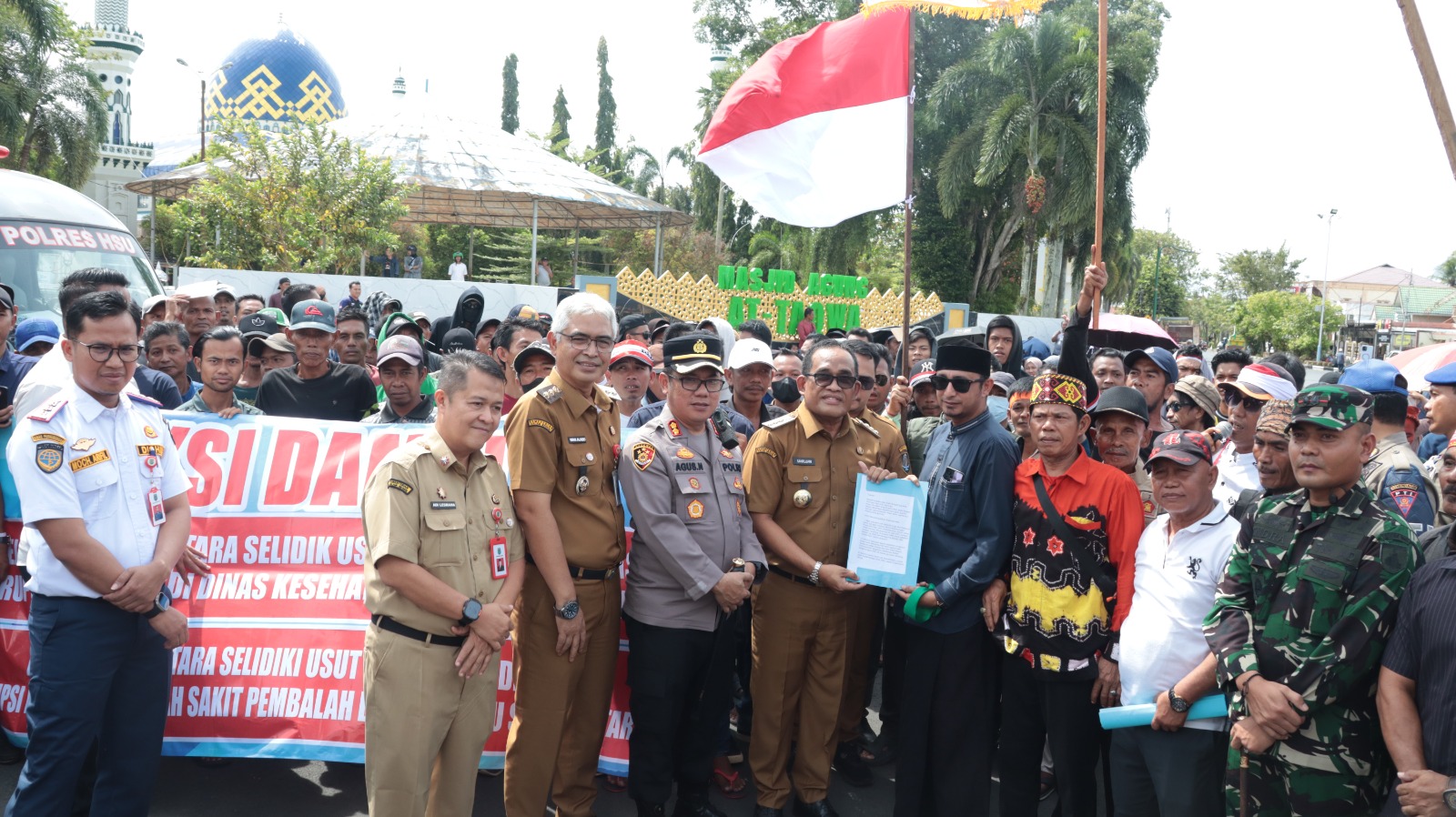 Dalam aksi tersebut, massa menyampaikan sejumlah aspirasi secara tertib dan damai, di antaranya ucapan terima kasih serta dukungan terhadap kinerja Bupati HSU, dukungan kepada Kejaksaan Negeri dalam penegakan hukum dan pemberantasan korupsi tanpa pandang bulu, serta aspirasi terkait dugaan permasalahan rekrutmen tenaga keamanan dan proyek pembangunan di RSUD Pembalah Batung Amuntai.