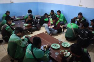 Acara kemudian dilanjutkan dengan ramah tamah dan pembagian makan siang gratis kepada driver ojol dan warga masyarakat. Selama kegiatan berlangsung, situasi berjalan aman, tertib, dan kondusif.