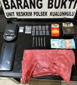 “Menindaklanjuti laporan warga, tim Opsnal melakukan penyelidikan dan pemantauan di sekitar TKP. Saat itu, petugas melihat seorang pria dengan gerak-gerik mencurigakan sedang duduk di depan gubuk kebun sawit milik warga. Setelah diamankan dan digeledah, ditemukan sejumlah barang bukti sabu dari pelaku,” ujar Kanit Reskrim.