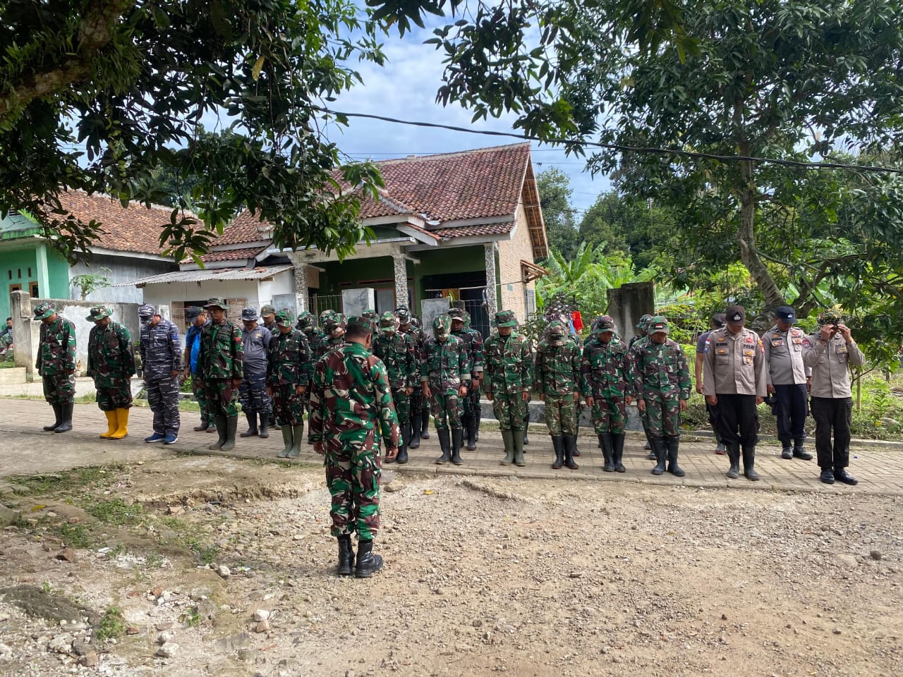 Apel dilaksanakan di lokasi TMMD, Desa Cikentrung, Kecamatan Cadasari, Kabupaten Pandeglang, dengan diikuti oleh seluruh personel TNI dari berbagai matra, anggota Polri, serta unsur masyarakat yang terlibat dalam kegiatan TMMD.Rabu(29/10/2025)