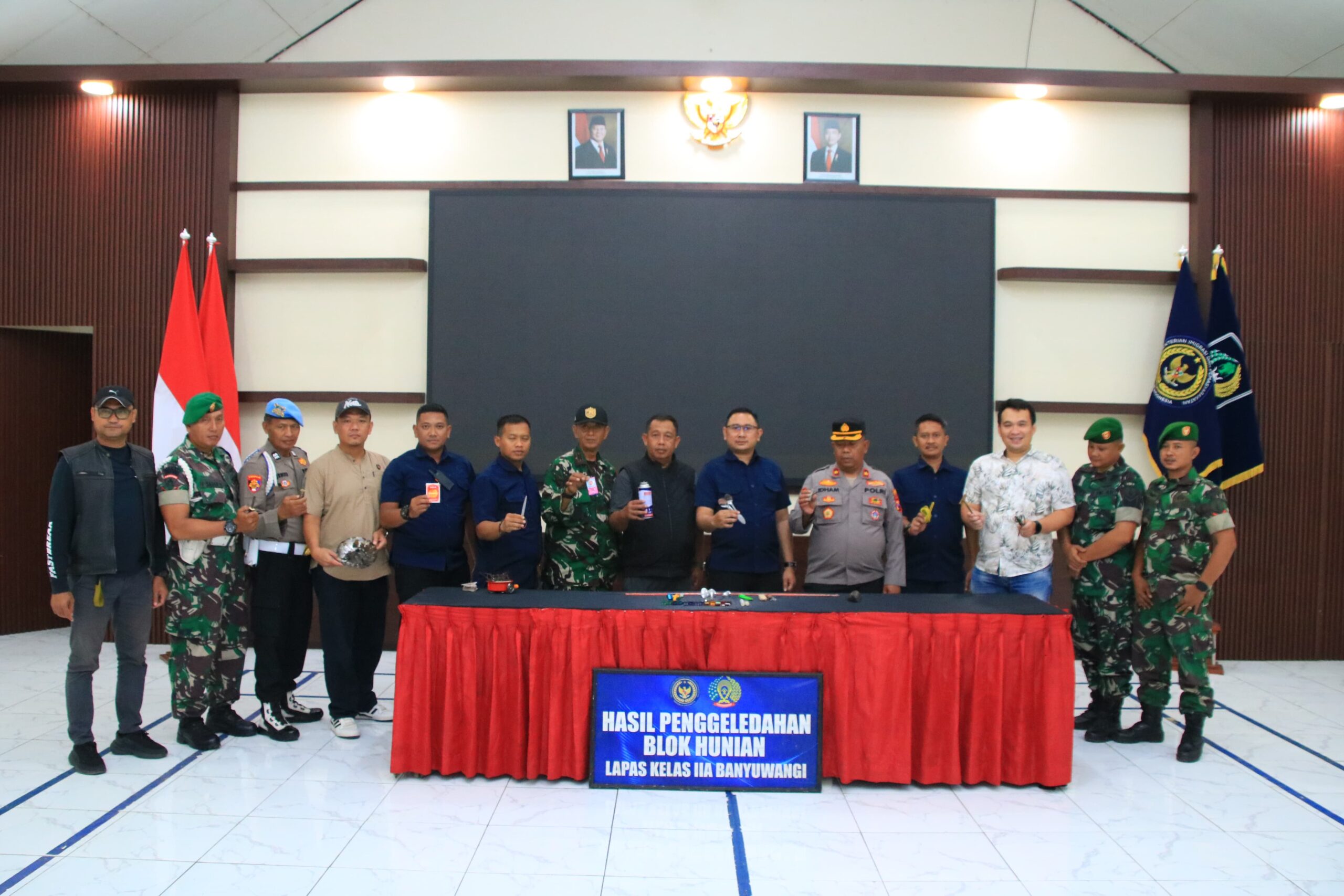 BANYUWANGI, Radar BI– Lembaga Pemasyarakatan (Lapas) Kelas IIA Banyuwangi kembali melaksanakan penggeledahan kamar hunian warga binaan, Sabtu (11/10) dini hari. Kali ini, kegiatan penggeledahan ditingkatkan dengan melibatkan unsur TNI dan Polri dalam rangka menciptakan lingkungan Lembaga Pemasyarakatan yang aman dan bersih dari barang terlarang.