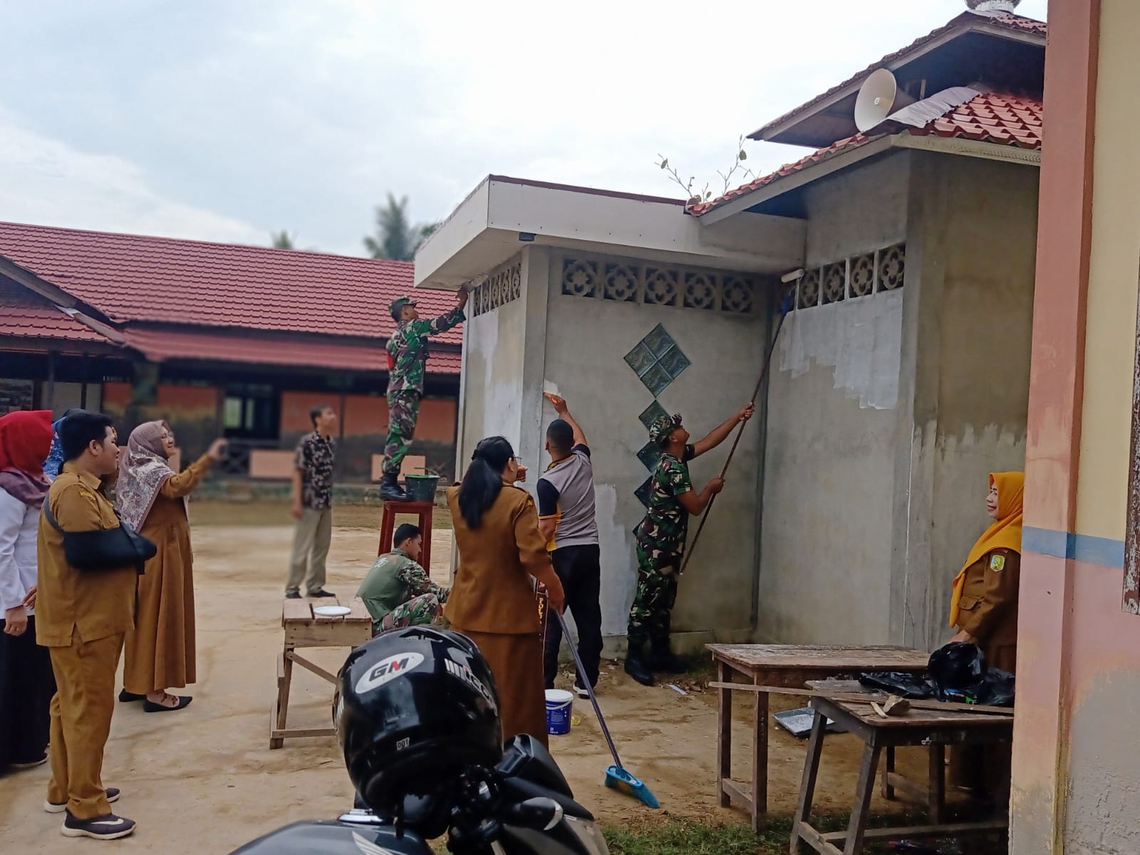 Sinergitas TNI POLRI Anggota Koramil 06/Selakau Gotong Royong Laksanakan Pengecetan Mushola Sekolah Dasar