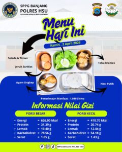 Program Makan Bergizi Gratis (MBG) yang dijalankan oleh Polres HSU merupakan bagian dari upaya mendukung peningkatan kualitas kesehatan masyarakat, khususnya bagi kelompok yang membutuhkan.
