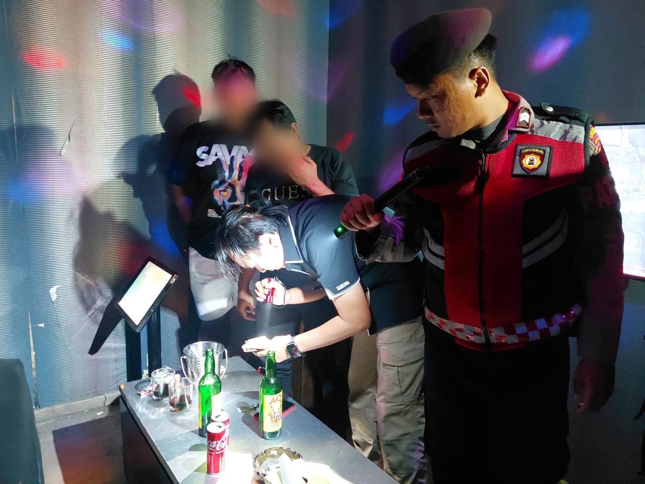 Selain penyitaan miras, petugas juga melakukan penggeledahan badan serta pemeriksaan barang bawaan pengunjung dan pemandu karaoke untuk memastikan tidak adanya senjata tajam maupun narkoba. Tes urine turut dilakukan terhadap belasan pengunjung dan staf tempat hiburan dengan melibatkan personel Dokpol.
