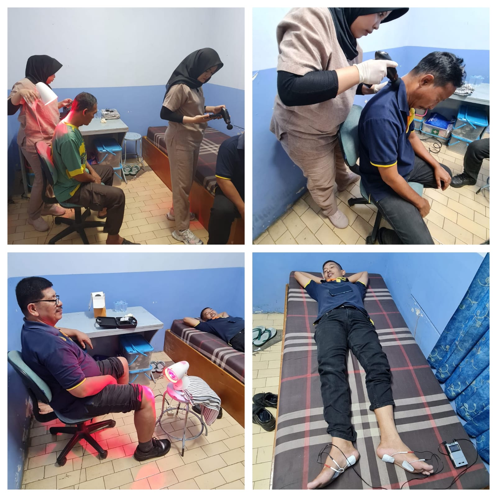 Program fisioterapi ini dilaksanakan untuk membantu karyawan yang mengalami keluhan muskuloskeletal akibat aktivitas kerja, seperti nyeri punggung, leher, bahu, dan persendian lainnya. Selain tindakan terapi, kegiatan ini juga diisi dengan edukasi terkait postur kerja yang benar serta pencegahan cedera akibat kerja berulang.